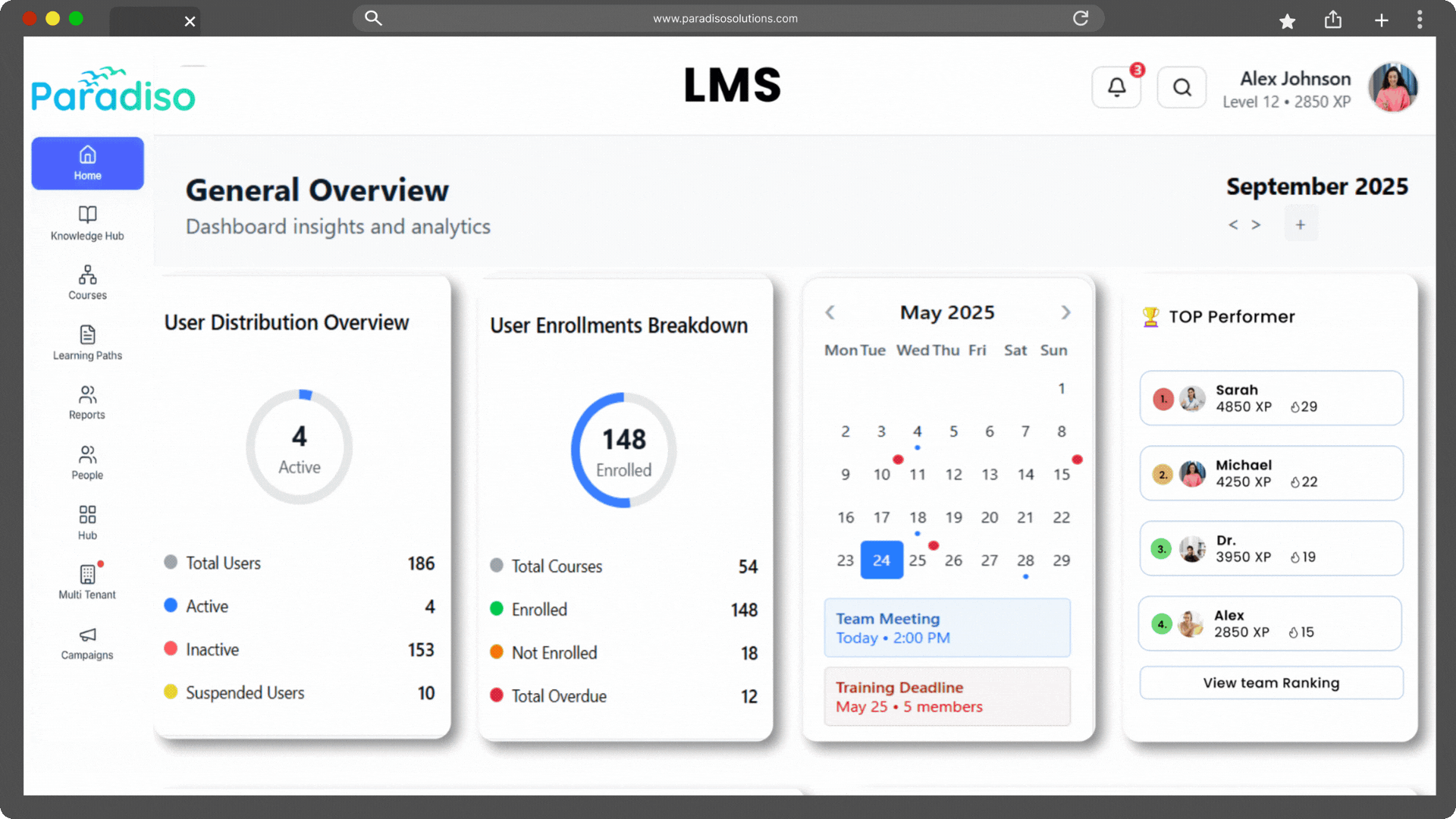 At Paradiso Solutions, we understand that each industry has unique learning requirements. Our eLearning software is designed to be fully customizable, offering an array of features and seamless integrations to address your specific needs. Say goodbye to juggling multiple platforms and elevate your productivity with our all-in-one, adaptable solution.