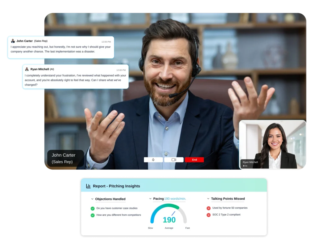 Enable sales teams to practice conversations and scenarios using AI roleplay, improving communication, negotiation, and closing skills through realistic simulations.