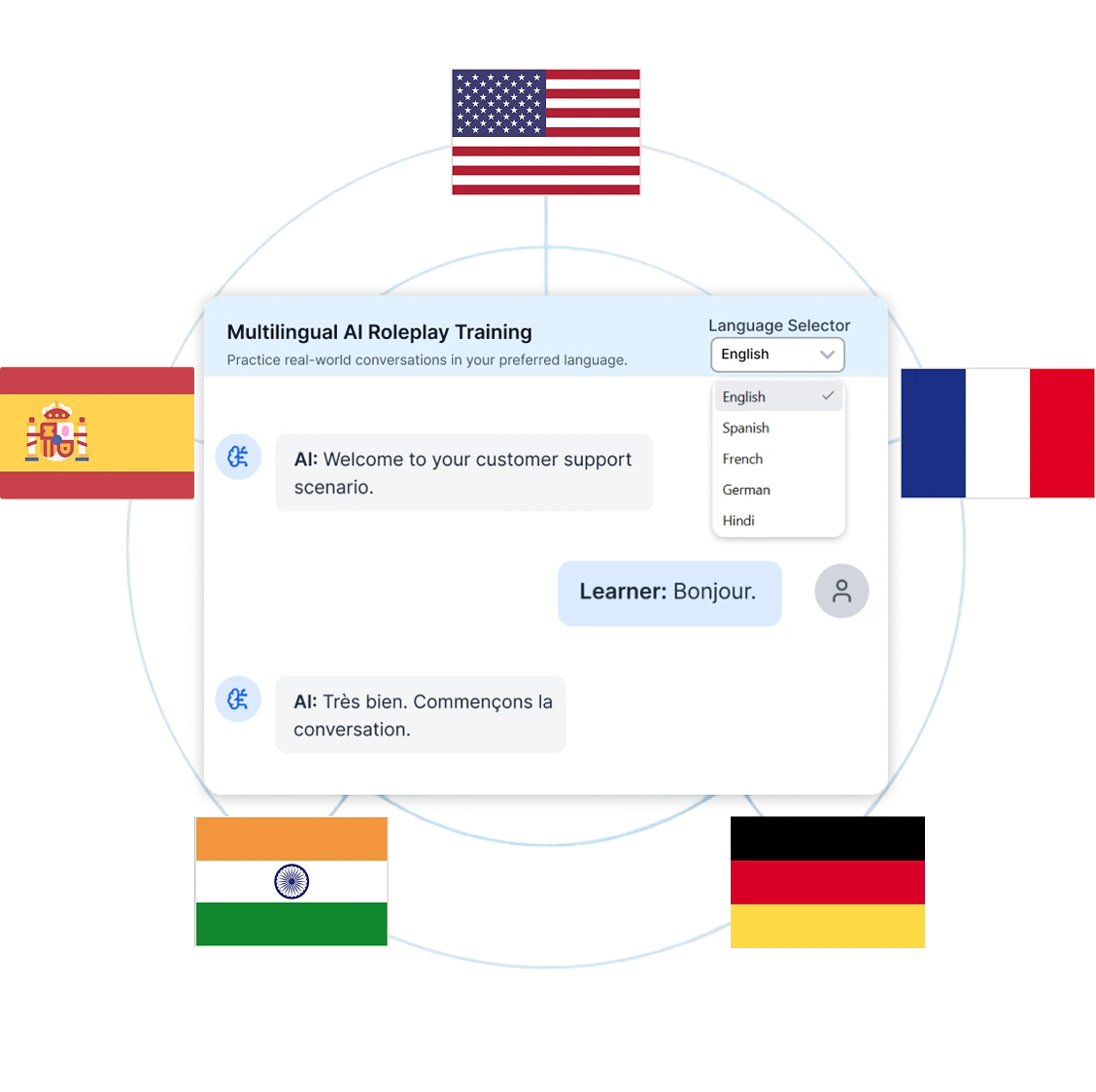 AI Roleplay’s multilingual feature delivers enterprise-level training, allowing teams across different regions to engage in realistic, AI-driven simulations in their native languages. By breaking down language barriers, global teams can practice essential skills, from sales calls to compliance protocols, with personalized, culturally relevant training. This feature ensures that employees from diverse linguistic backgrounds receive immediate, actionable feedback, enhancing inclusivity and enabling effective skill development on a global scale.