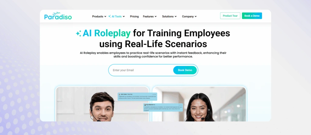 Among the many tools available, Paradiso stands out as one of the best AI roleplay platforms for corporate training in 2026. Unlike generic roleplay chatbots, Paradiso AI Roleplay is purpose-built for learning, performance improvement, and behavioral change.