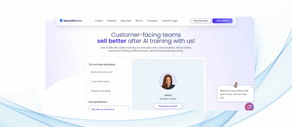 SecondNature AI is a sales training platform that lets reps practice realistic conversations through AI-driven roleplay. It creates tailored scenarios and provides instant feedback to improve skills, accelerate onboarding, and boost performance.