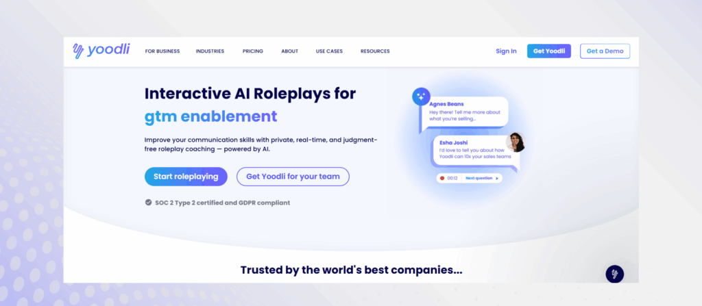 In 2026, the best AI roleplay software is widely used across corporate training, sales enablement, education, and leadership development. Organizations now rely on AI roleplay to practice real-world conversations in a safe environment, making it one of the most effective methods for skill-building and performance improvement.