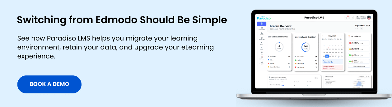 The news of the Edmodo platform closing on September 22, 2022, is significant for education as the new academic year begins. Edmodo has been an important tool for online teaching, supporting over 100 million users, especially during the pandemic. If you’re running a business or educational institution and need an Edmodo alternative, Paradiso LMS is your one-stop solution.