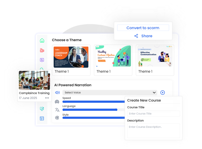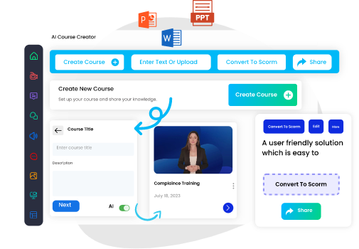 Create and customize engaging eLearning content using our advanced AI-powered authoring tool. Craft professional courses quickly and easily, providing interactive, effective learning experiences.