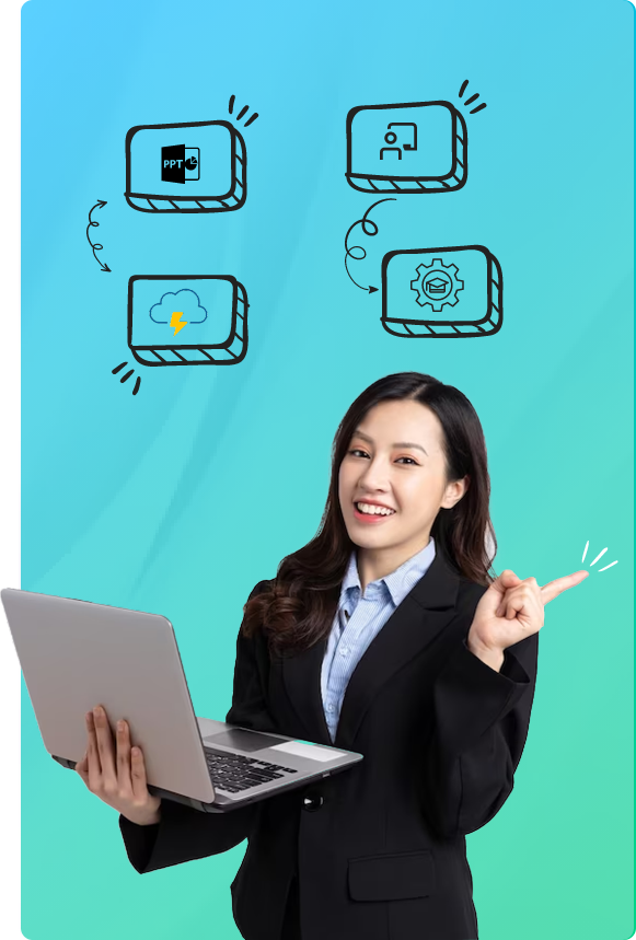 - Import with Ease – Upload your existing content (PDF, PPT and word files) and instantly convert it into an interactive module.