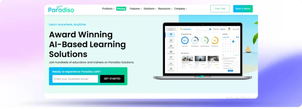 Paradiso LMS also supports gamification, social learning, multi-tenancy, and extensive integrations with enterprise systems.
