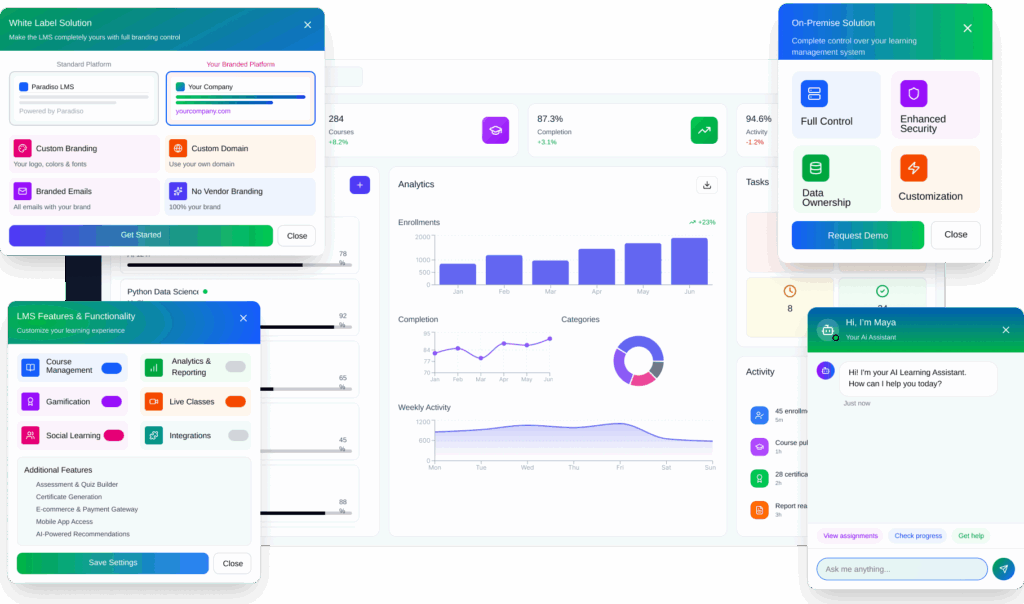 Paradiso Open LMS is a fully featured learning platform that combines open-source flexibility with enterprise-grade UX, integrations, and support for businesses, training companies, and education providers.