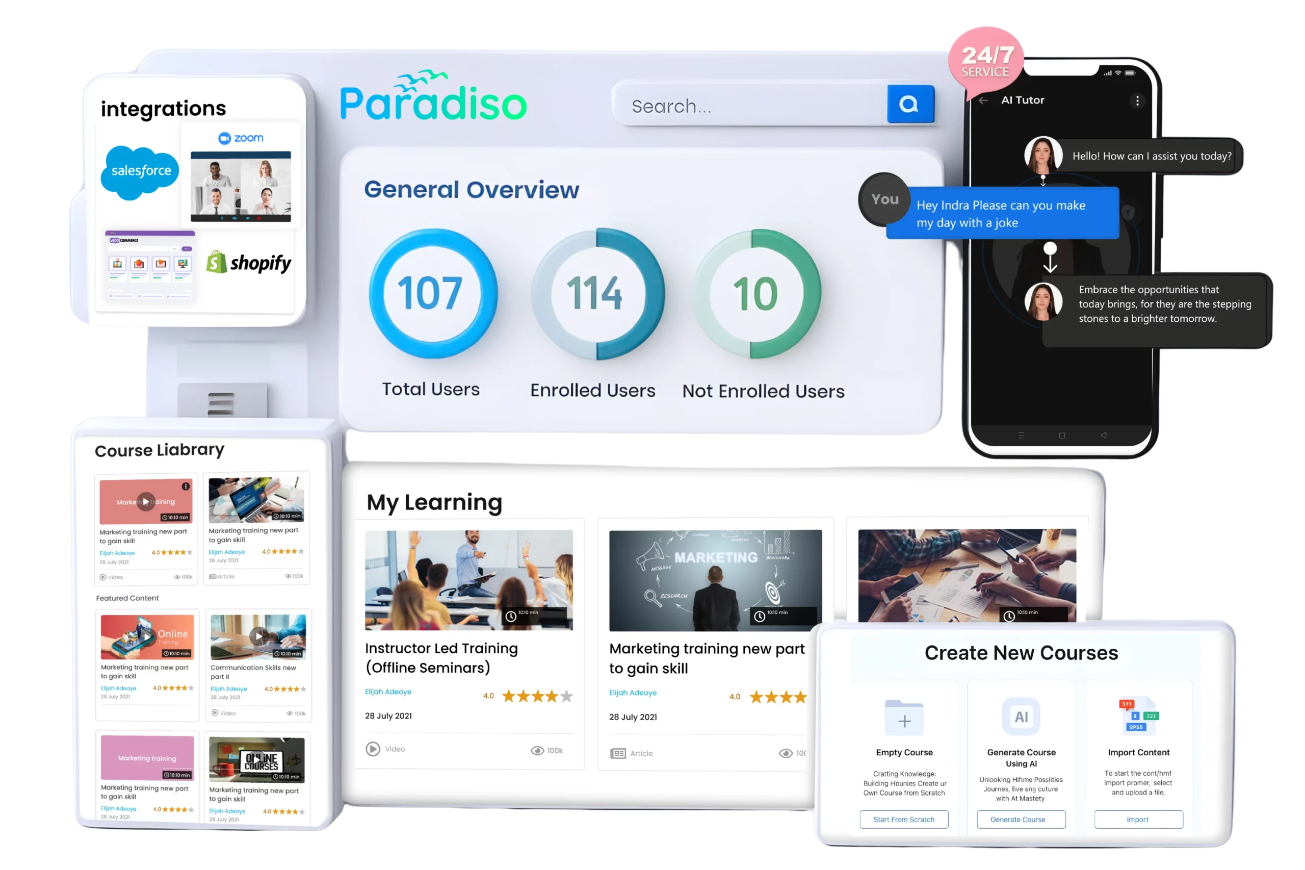 Yes, Paradiso LMS seamlessly integrates with various tools like HRMS, CRM systems, and other LMS platforms. Whether you have existing learning tools or need to combine multiple systems, Paradiso LMS ensures smooth integration for enhanced workflow.